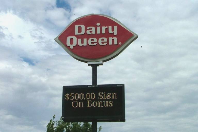 “How do you know you’re in oil field country?” Facebooks Kerri Thoreson . The answer, which occurred during her recent trip through North Dakota? “A $15 an hour fast food job comes with a $500 sign on bonus. ” Kerri snapped this photo during a recent vacation that included a trek through Williston, ND. Supply and demand, baybee. Supply and demand.