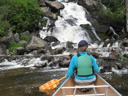 Canoeists enjoy the waterfalls on the West Branch of the Little Spokane River. The 50-foot Exley Falls, which tumble into Horseshoe Lake in Pend Oreille County just north of Eloika Lake, run strong in spring but ease back a trickle in summer. (Rich Landers)
