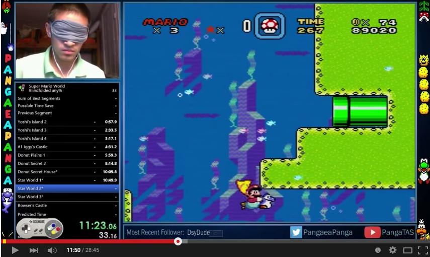 But Super Mario World aficionado PangaeaPanga just posted a speed run I can get behind. Watch below as he speed runs the SNES classic - without being able to see.