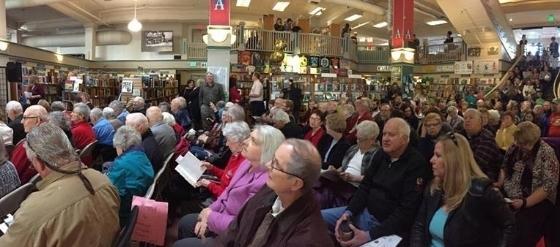 Readers crowded into Auntie’s Bookstore on Feb. 22 to hear Cindy Hval read from her nonfiction book “War Bonds: Love Stories From the Greatest Generation.” (Courtesy photo: Cindy Hval’s Facebook page)