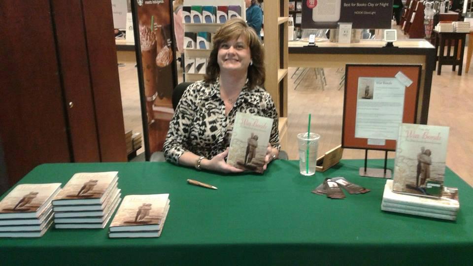Cindy posts: “Always chat with authors at book signings. Otherwise we get lonely and our smiles look like this!” In her War Bonds blog, Cindy notes that “Special guests make book signings better” here.