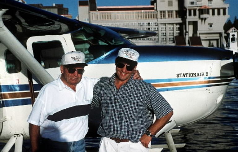 In this April 2003 file photo, Bill Brooks and his son Grant, right, are shown with their seaplane at City Dock in Coeur d’Alene. Bob has been flying from that spot since 1946. (Panhandle Pieces photo: Mike Kincaid)
