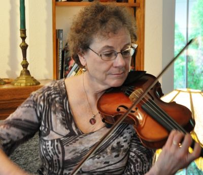 Betsy Bullard of Coeur d’Alene is shown with the custom-built violin that she won at a fund-raising auction for the Coeur d’Alene Symphony. The fund-raiser for the Coeur d’Alene Symphony continues with an auction for a custom-built viola, on eBay. See details below.