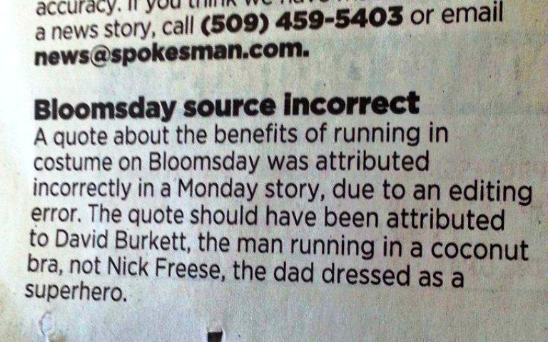 On Twitter, SReporter Rachel Alexander tweets that she doesn’t relish making corrections to information in her stories. But one of the favorite corrections she ever made occurred this week re: a quote made by a Bloomie in a costume Sunday. Tweets Rachel: “My bad on this error, but this is probably the best correction I’ve had to write.” You can check out the correction above.