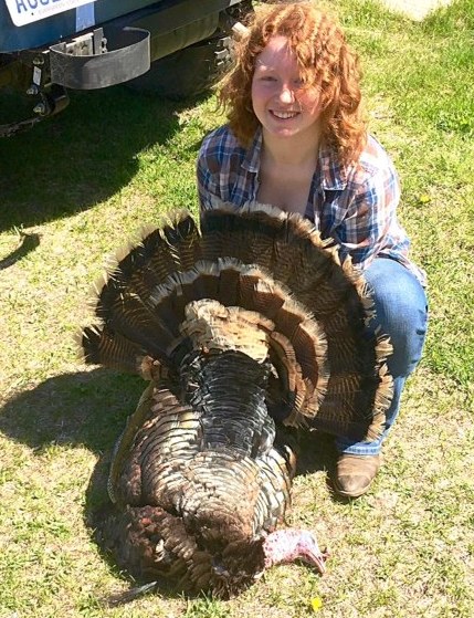 Liz, now 17, was out Saturday to keep the string going with a nice gobbler (top photo).