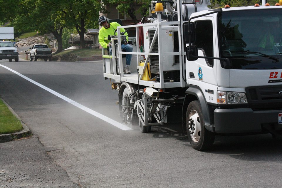 When the Centennial Trail was rerouted through McEuen Park as part of the park redevelopment, if left many trail users confused on the east end of the park because the trail stops. It picks up again two blocks to the north on Mullan Avenue along Eighth Street. To alleviate confusion and maintain a continuous trail flow, city street crews this week striped both sides of Eighth Street between Young and Mullan avenues. (Photo: Coeur d’Alene Today)