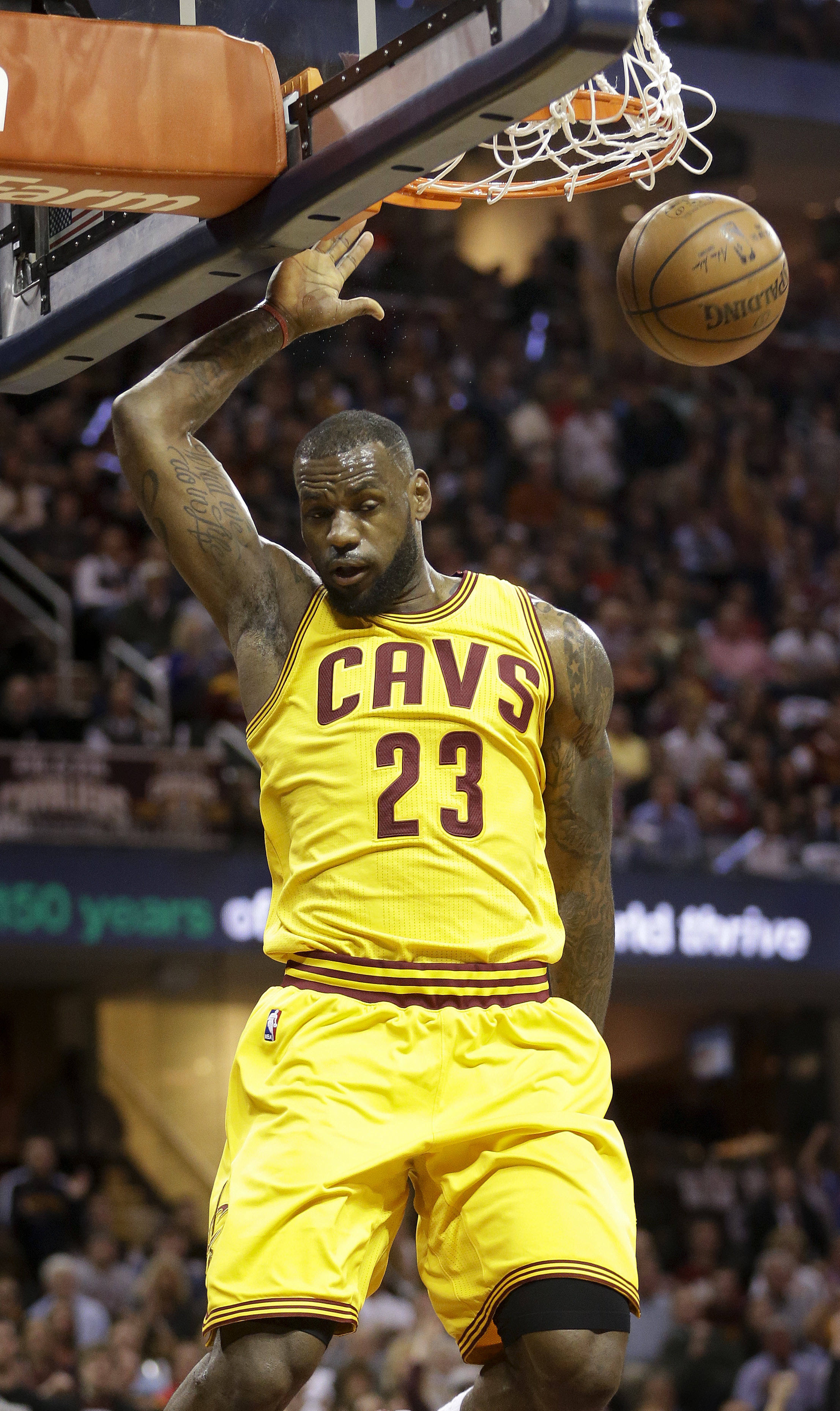 Showing no ill effects from a sprained left ankle, James, who added 12 rebounds, six assists and didn’t have a turnover in 41 minutes, ensured the Cavs will again play at home this season.