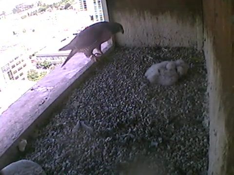 All four eggs in the downtown Boise Peregrine falcon nest have hatched, and the fuzzy chicks can be seen on the Falconcam, huddling together for warmth or moving around; periodically, viewers have spotted the adults feeding the chicks. The first of the four eggs hatched on May 5 and the fourth one on Friday; the nesting box is located on a 14 th floor ledge at One Capital Center, the office building at 10 th and Main streets. The nest box has been used by once-endangered Peregrine falcons each spring since 2003; the spot mimics the high, steep cliffs falcons use in the wild, and generations of falcons have now been successfully reared there.