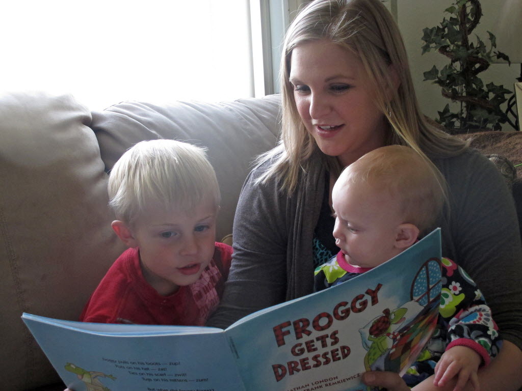 Yvonne Stoneburner, center, reads to her son Caleb, left and her daughter Karlee, right, on Tuesday, in Mountain Home. Stoneburner, a single mom who relies on out-of-state child support payments, is hoping the Idaho Legislature passes legislation during its May 18 special session that will prevent Idaho’s child support enforcement and collection system from being dismantled. (AP Photo/Kimberlee Kruesi)