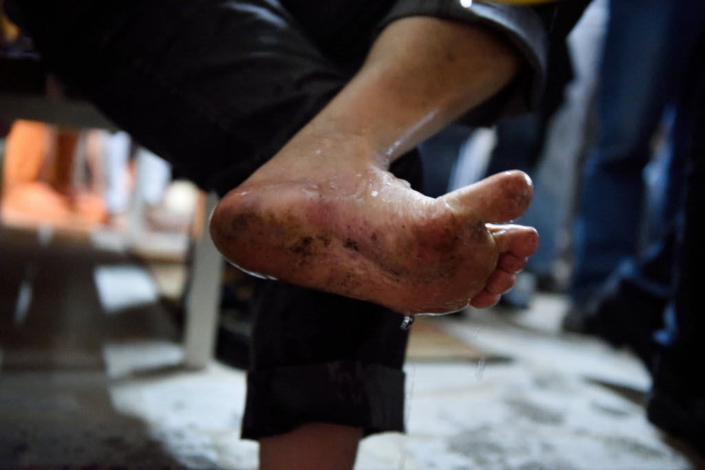 A firewalker washes his feet after the custom of “anastenarides” in the Agia Eleni village near the northern Greek town of Serres. Firewalker or “anastenarides” in Greek, mark the feast day of Saints Constantine and Helen as references to firewalking have been traced back to the ancient rites of Dionysus, the Greek god of revelry. You write the cutline. (AP Photo/Giannis Papanikos)