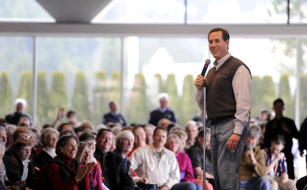 In this Feb. 14, 2012 SR file photo, presidential candidate Rick Santorum answers questions from the crowd Tuesday at the Hagadone Events Center in Coeur d’Alene. After his stop in the Lake City, he was headed to Boise for an evening event. Santorum announced today that he’s running again for the GOP presidential nomination. Story here. (SR file photo: Jesse Tinsley)