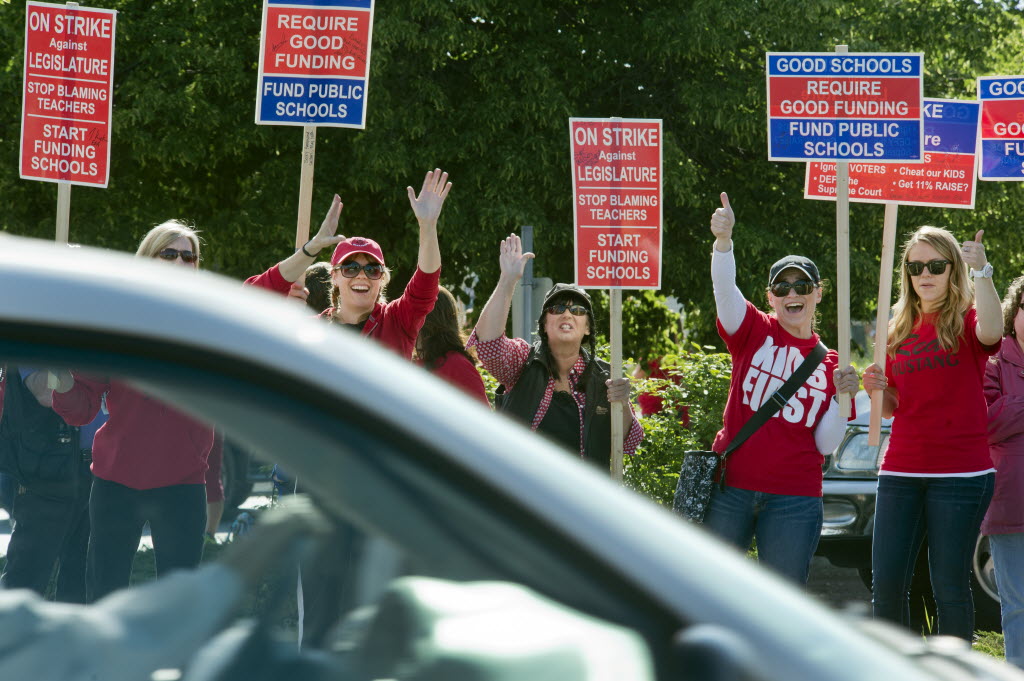 Spokane and East Valley teachers began their one-day walkout Wednesday morning to protest the Washington Legislature’s failure to meet a state Supreme Court demand to increase school funding. Teachers began gathering around 8 a.m. at the intersection of Ash Street and Northwest Boulevard and at Manito Center at 29th Avenue and Scott Street. They said large classes and too much standardized testing are cutting into the time and resources available to students, and school staff aren’t being paid enough for their work. “I put in a lot of hours that I don’t get paid for,” said Brian Monger, a math teacher at The Community School on West Knox Avenue. “And unfortunately that’s the only way to be an effective teacher right now. That’s the only way to make a difference in the kids’ lives”/ Scott Maben & Chad Sokol , SR. More here.