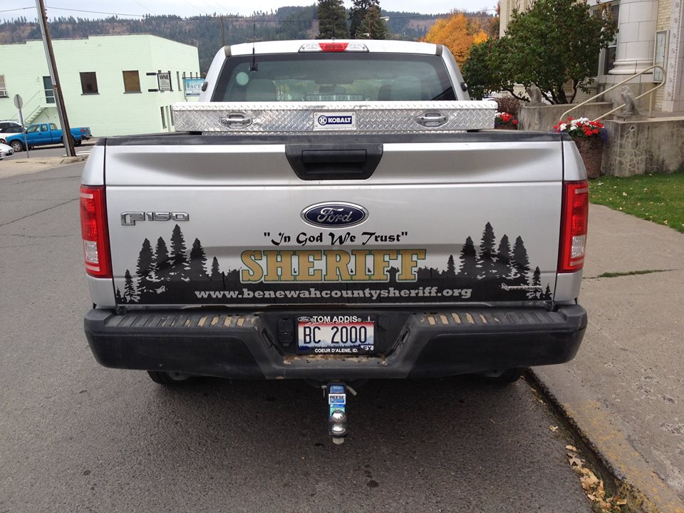 Yesterday, we discussed Benewah County Sheriff Dave Resser’s decision to add “In God we trust” wording to his department’s patrol vehicles . Here’s a photo of a department pickup with those words from the Benewah County Sheriff’s Office Facebook wall. In the comments section, you can see a different Benewah County Sheriff’s Office vehicle with the “In God we trust” decal on it.