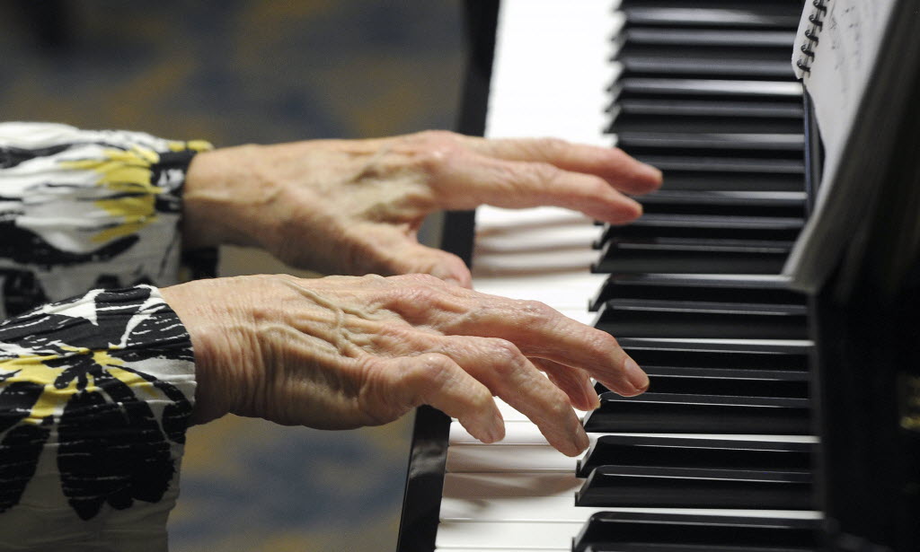 Dollie McKenzie plays a variety of songs each week for her fellow residents at MorningStar Senior Living Center in Idaho Falls. It’s been more than 80 years, but Dollie McKenzie still remembers her first piano lessons. In February, McKenzie chose to celebrate the start of her tenth decade of life fittingly — with a public music program featuring a performance from McKenzie herself along with her daughter, Rexburg-based musician Beverly Solomon, and her granddaughter, Jenny Solomon. Story here. (Monte LaOrange/Idaho Post-Register via AP)
