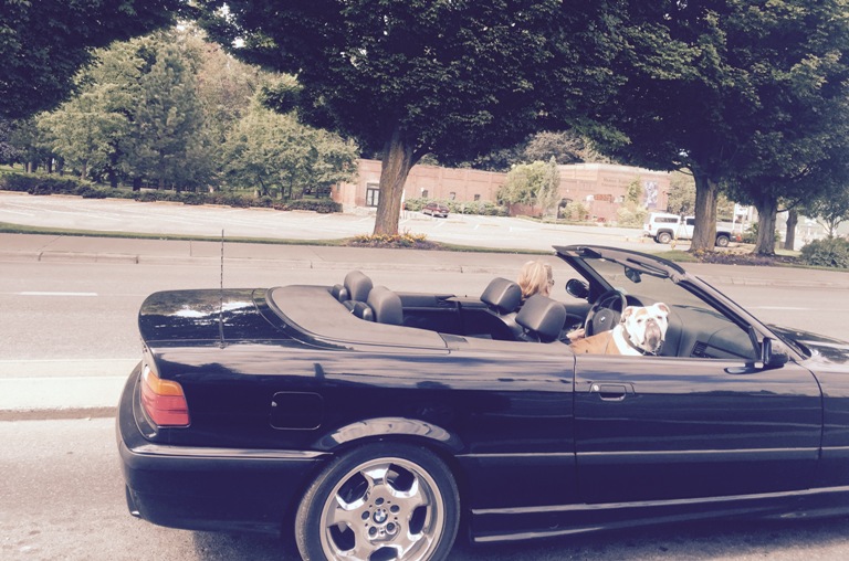 JohnA spotted this gal and her Beamer Buddy a half hour ago on Northwest Boulevard, in front of the Human Rights Education Institute.