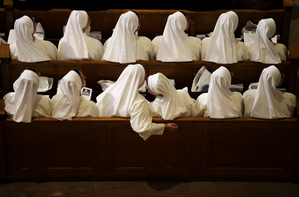 Nuns sit in their pews while waiting for Pope Francis to arrive inside the Basilica of the National Shrine of the Immaculate Conception Wednesday in Washington. (AP Photo/David Goldman)