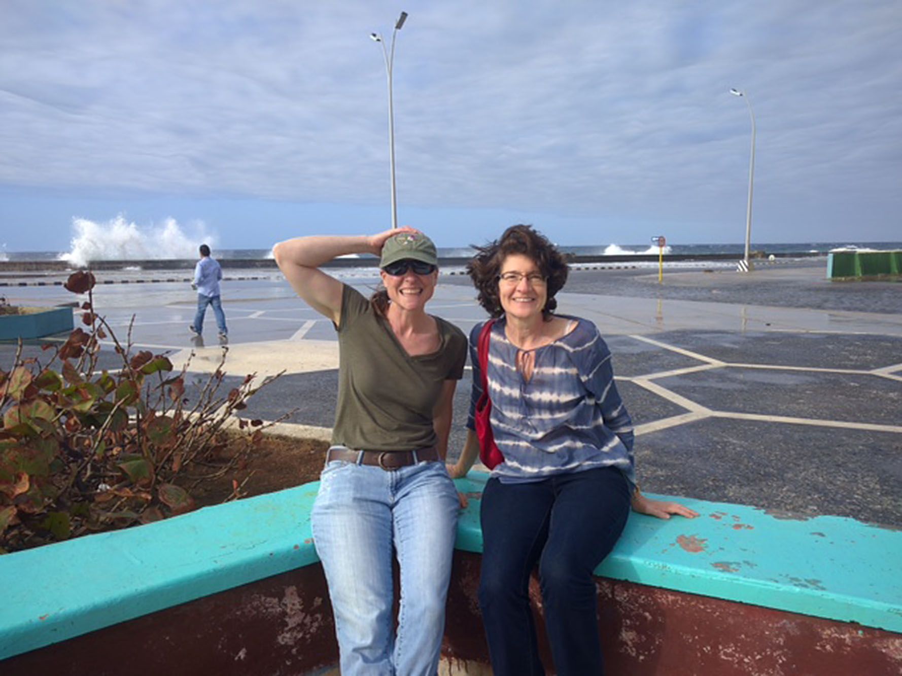 Alison Boggs and a friend in the traveling group in front of the malecon,