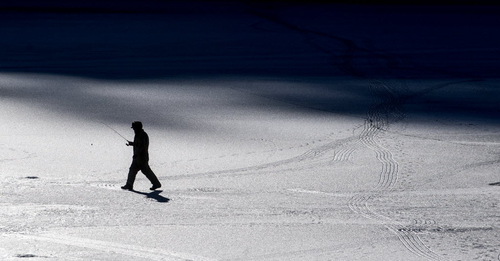 “It’s not as fun as it looks,” said Dick Fields while ice fishing on Fernan Lake in Coeur d’Alene on Monday. He was fishing for perch and said that the ice was 4.5-5 inches thick. (SR photo: Kathy Plonka)