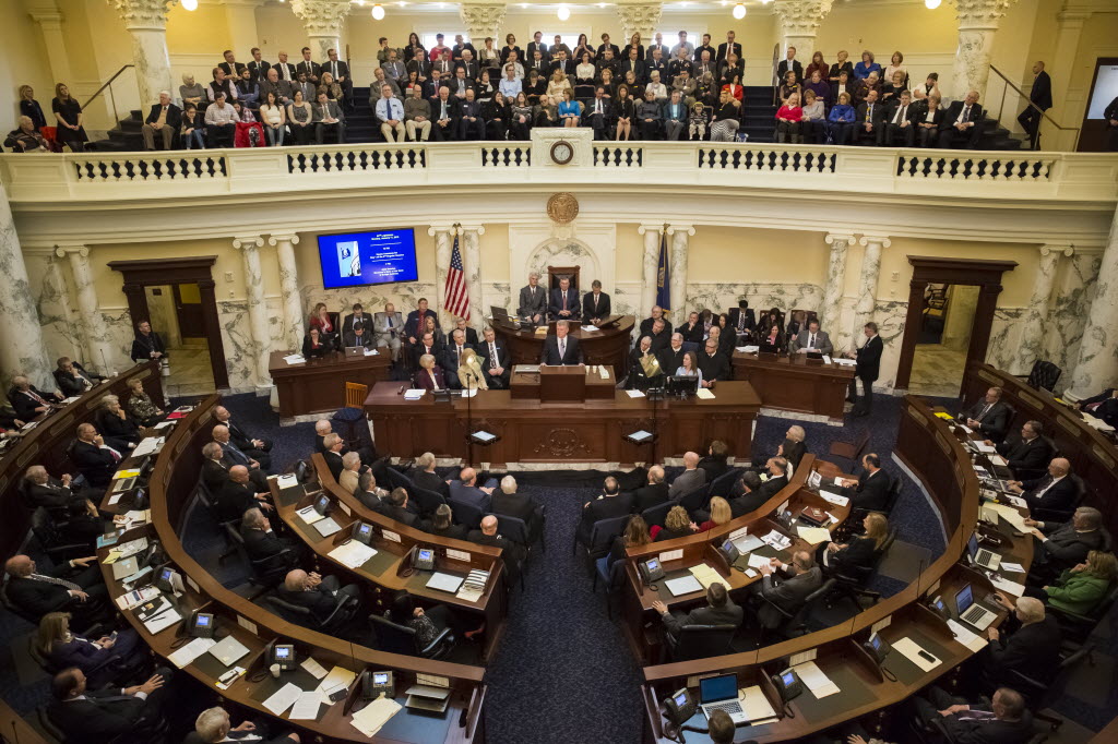 Idaho Gov. C.L. “Butch” Otter delivers his State of the State address inside the House chambers at the state Capitol building on Monday in Boise. (AP Photo/Otto Kitsinger)