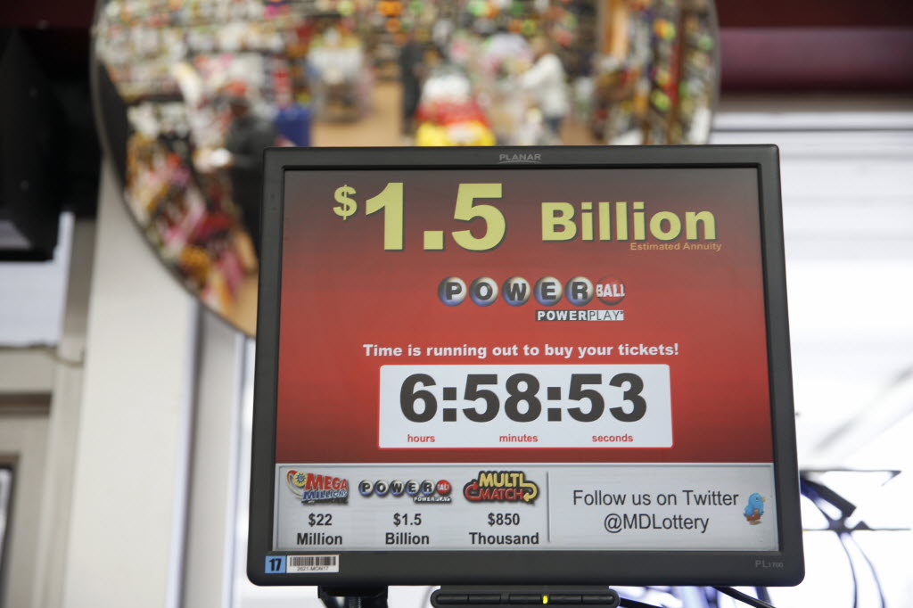 A sign for the Powerball jackpot is seen at the Sunnybrook Tavern and Liquor Store, Wednesday, in Fort Washington. The estimated Powerball jackpot was holding steady at $1.5 billion just hours ahead of Wednesday night’s drawing, though same-day ticket sales could push the record-breaking amount even higher. (AP Photo/Alex Brandon)