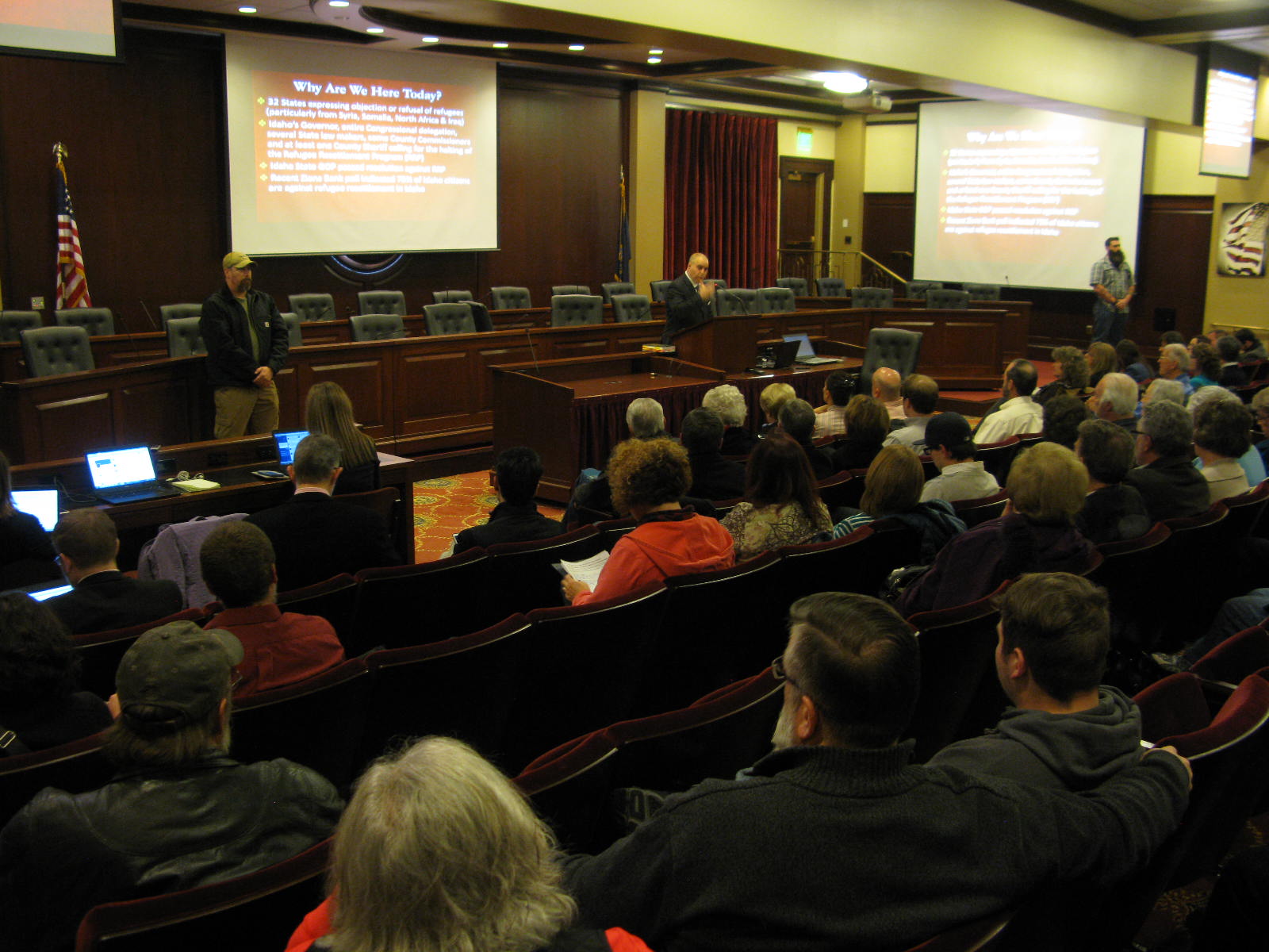 Hadian then opened the session with a prayer and the Pledge of Allegiance. He noted that he has heard from lawmakers with concerns about the vetting of refugees, and that county commissioners and a sheriff in North Idaho have expressed concerns, as has the Idaho Republican Party in a resolution, and the governor and members of Idaho’s congressional delegation.