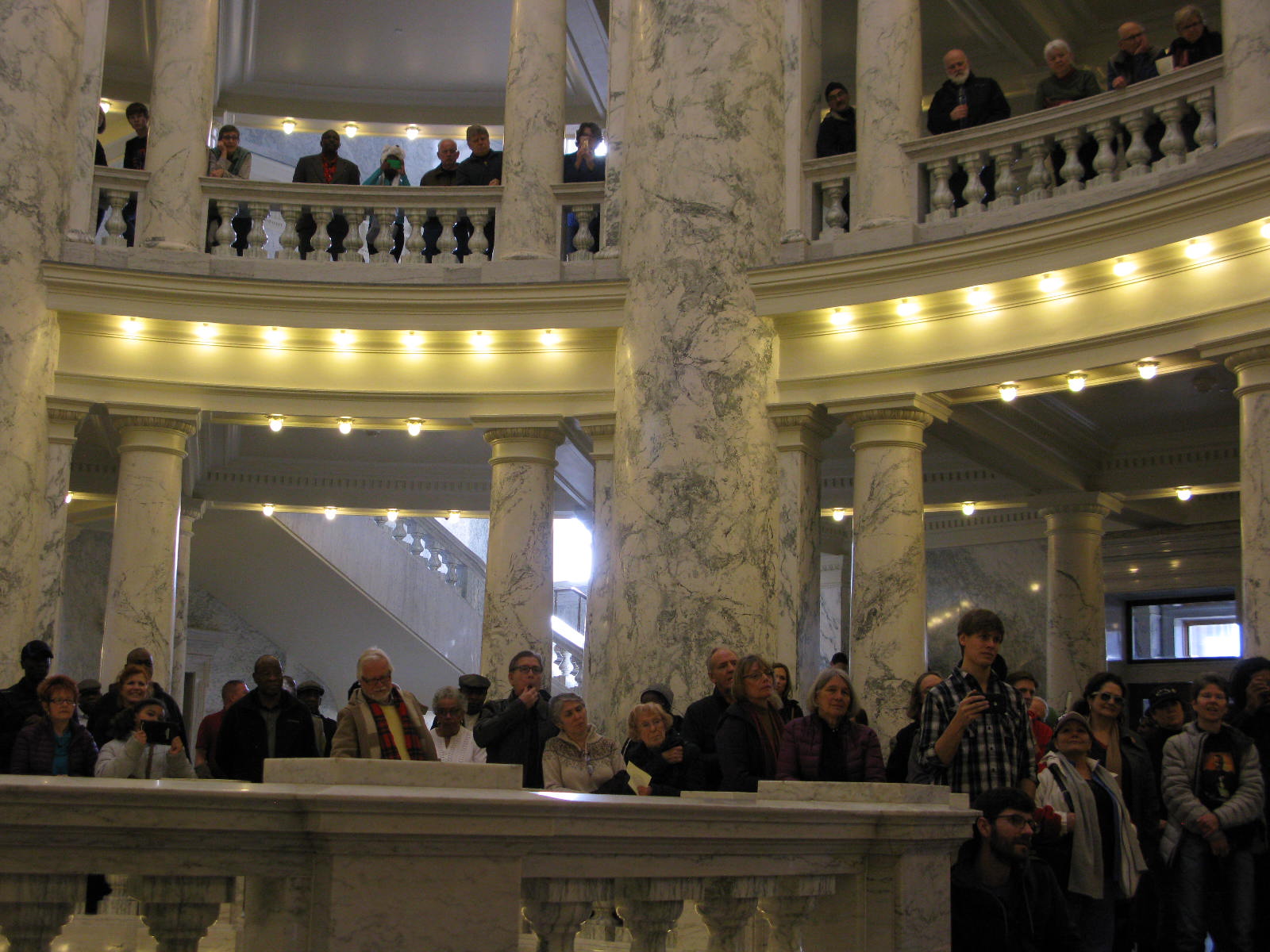 Idaho Lt. Gov. Brad Little told the big crowd assembled in the Capitol rotunda, “Welcome to your Capitol.” He said, “This morning, as our Senate chaplain opened up our session upstairs, he quoted from Roosevelt’s poem about being in the arena. And congratulations to all of you for being in the arena. And there was one person who was definitely in the arena, and that was Dr. King.”