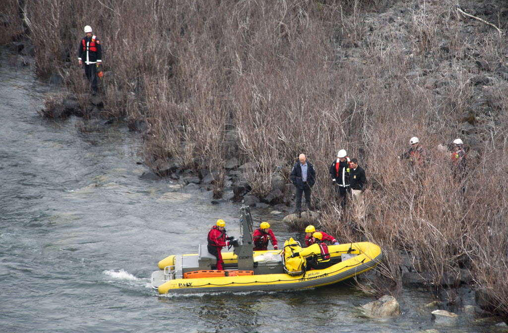 Spokane Fire Department Marine Rescue Unit recovers the body of Veterans Affairs hospital surgeon John Marshall, Jan. 26, 2016, from the Spokane River. Updated story here . (SR photo: Dan Pelle)