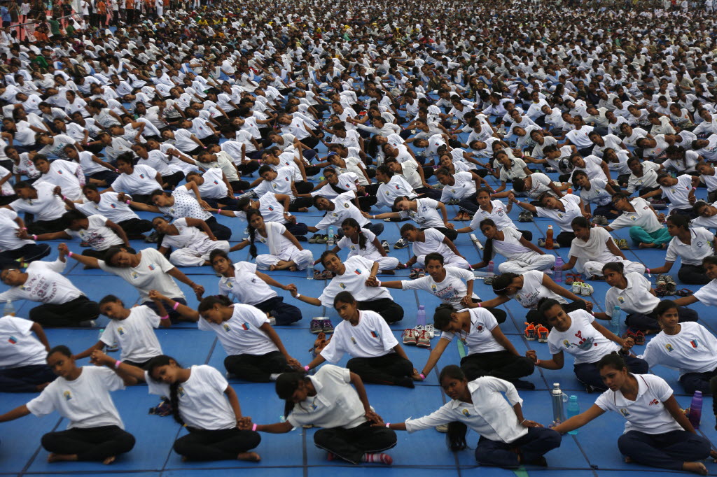 Indians holds hands as they attempt to create a record for the longest human yoga chain with more than 8000 participants at an event to celebrate the recent International Yoga Day in Ahmadabad, India. You write the cutline. (AP Photo/Ajit Solanki, File)