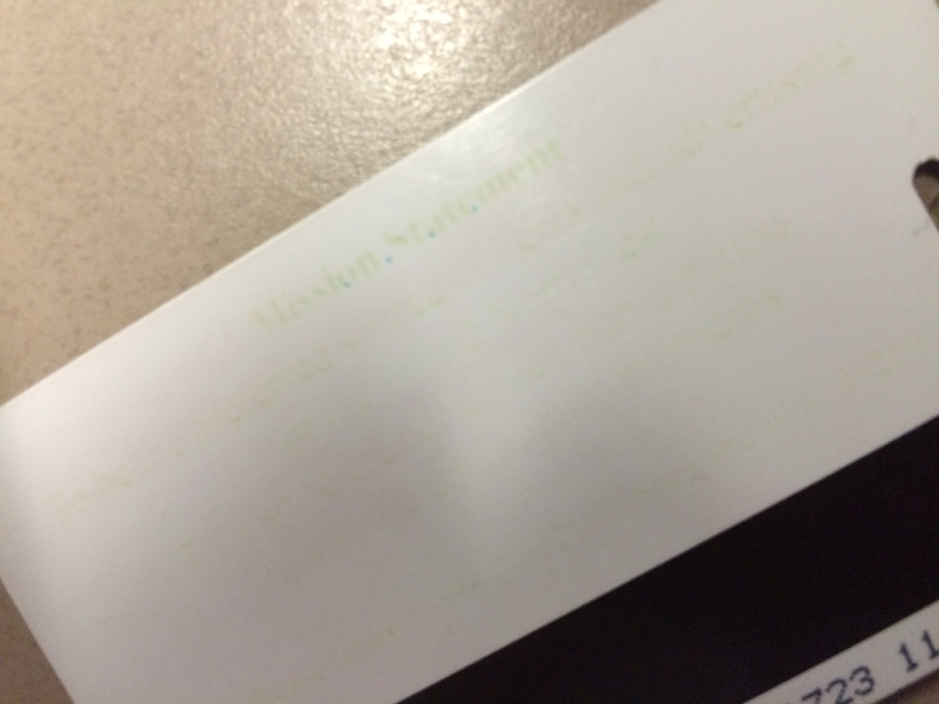 I know, it’s hard to see. And the text of the actual mission statement is impossible to read because it has been rubbed against my shirt pockets so many times the actual message has long since been erased.