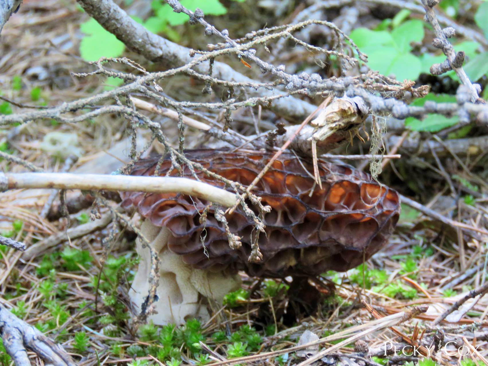 On her Priest Lake Facebook site, Pecky Cox/As the Lake Churns describes her photo of a crowded Morel mushroom fighting for survival as “Against all odds.” Pecky wonders: How many of you hunt for mushrooms?