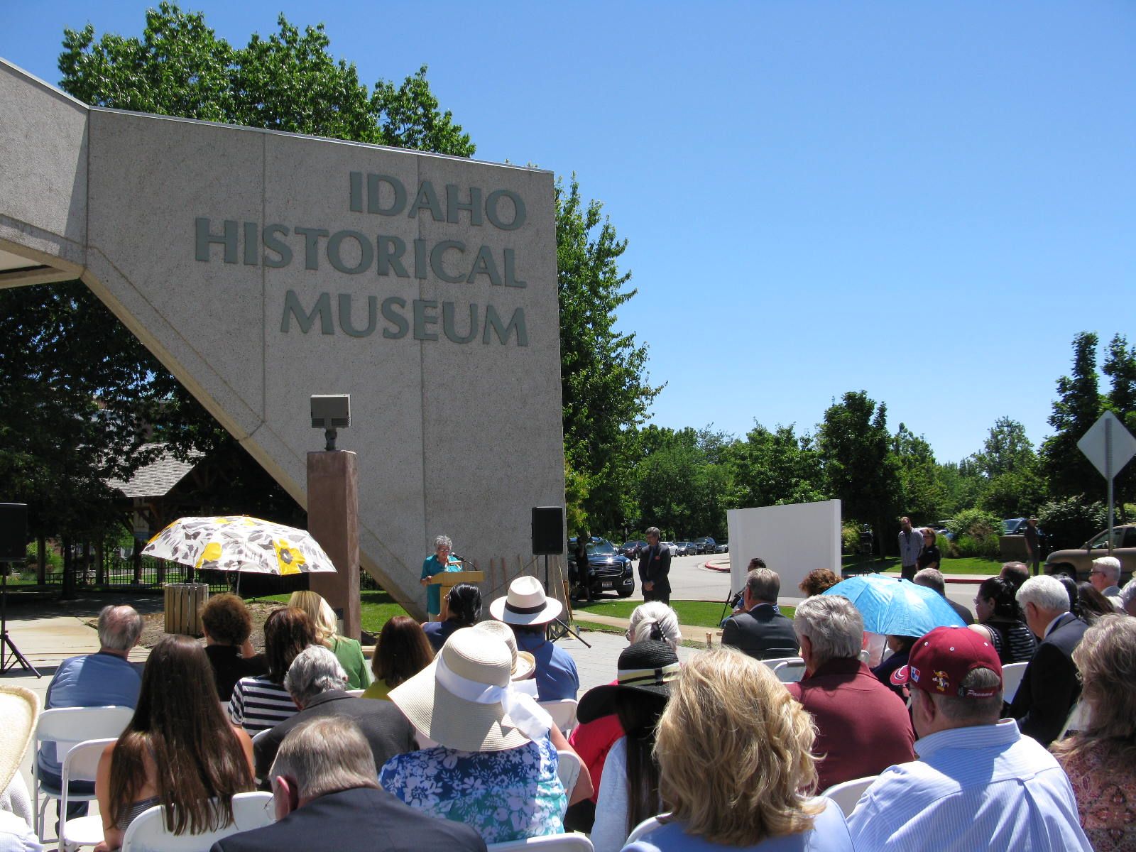 State Historical Society Director Janet Gallimore told the crowd the new exhibits were developed after traveling the state and meeting with an array of stakeholders, from Idaho tribes to educators to tourism officials and more, “to make sure that the Idaho story that is told in this museum resonates. “What we learned from our journey is … no people really becomes a community until it’s wrapped in human memory … until it has a history, and until it’s aware of that history.”