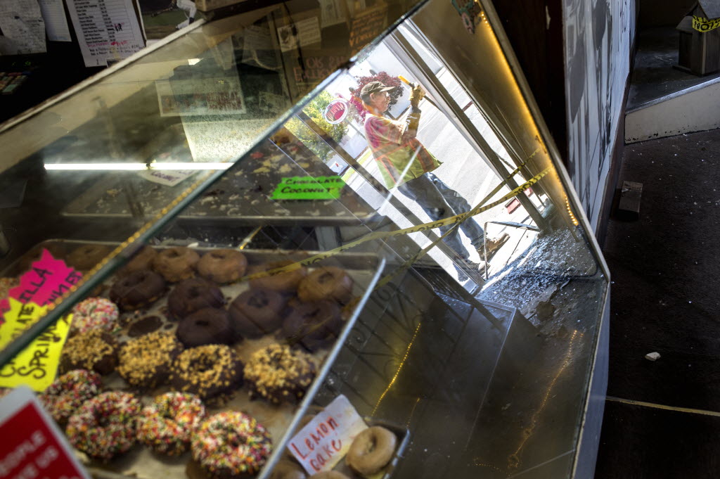Customers and staff at The Donut Parade were jolted by more than the coffee on Tuesday. At about noon, a driver of a 1993 red Honda Civic apparently fell asleep at the wheel before slamming into the front door of the beloved doughnut shop, 2152 N. Hamilton St., Spokane police Officer Aaron Childress said. “I just heard it and it felt like an earthquake,” said Donut Parade owner Christian Reno. The driver whose identity has not been released, was heading north on Hamilton Street near Illinois Avenue when witnesses say his car veered to the right and hit a crosswalk pole, which collapsed. A pedestrian was injured in the incident. His car then crashed into the front door of the Donut Parade, which had multiple staff and customers inside/ Jonathan Glover, SR. More here (subscription).