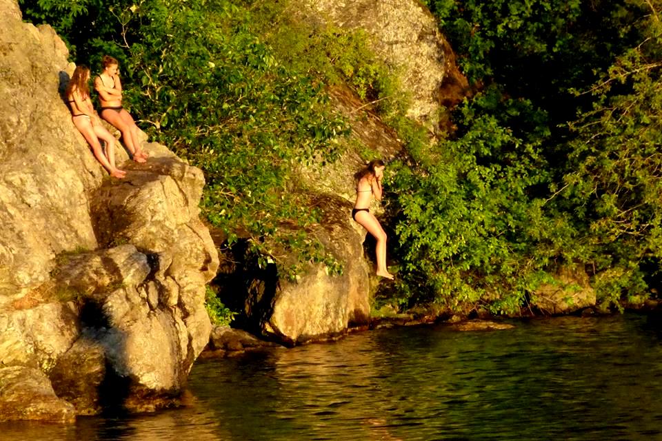 A brave girl jumps from the rocks on the west side of Tubbs Hill as her two friends watch. (Don Sausser/Facebook photo)