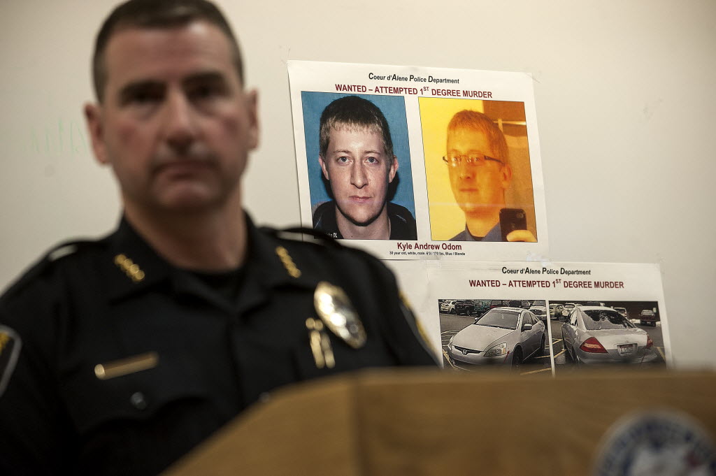 Kyle Andrew Odom was armed while inside the Altar Church on Sunday before he left and allegedly shot Pastor Tim Remington in the parking lot, police said Monday. “I think our community as a whole got very, very lucky on Sunday,” Coeur d’Alene police Chief Lee White said during a news conference. “I think this could been much worse,” he continued, noting the number of mass shootings in the U.S. “I’m not saying that’s what was planned in this case,” White continued. “But the fact he was armed and acting in such a suspicious manner in the middle of a church … it’s one of the reasons we’re concerned about Mr. Odom and his whereabouts, and what his next plans may be.” The chief said investigators tracked Odom’s movements west to Spokane, then south from there, but lost the trail/ Scott Maben , SR. More here.