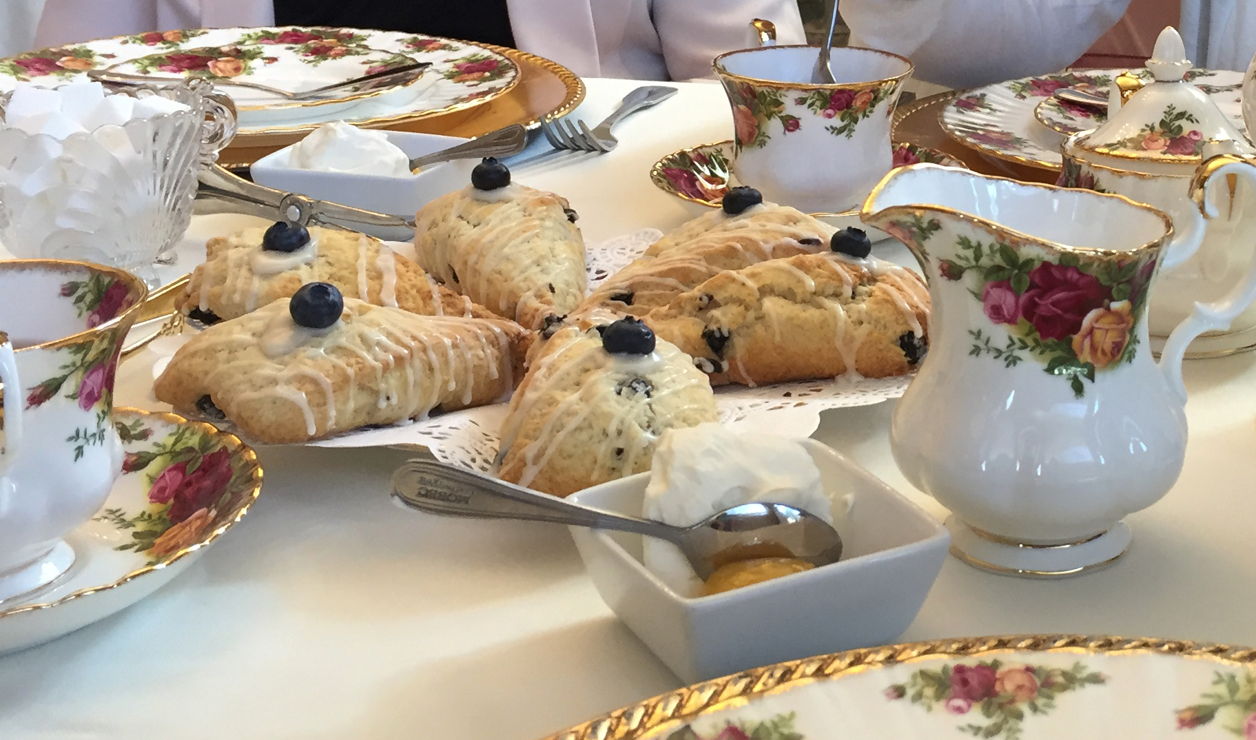 Our group also enjoyed six pots of tea, served in painted rose china, of course. With a 3-page tea menu, we had difficulty choosing, but were delighted by the variety from traditional Darjeeling to a literal Garden Basket tea with fragrant fruits and flowers.