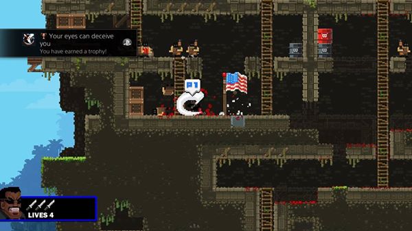 While the ability to destroy almost anything on screen opens up the gameplay, it also taxes the game so much that the framerate chugs to a grinding halt in later stages, almost rendering them unplayable. The final set of levels in the game represent one of the most frustrating experiences I’ve had in gaming, and Broforce suffers tremendously because of it.