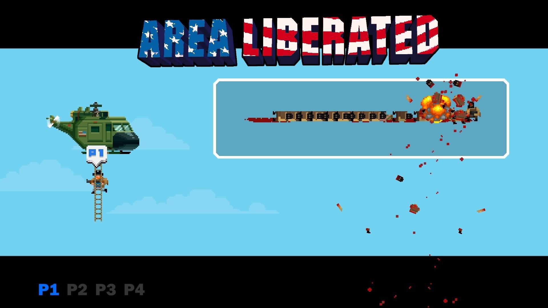 One shot will kill your bro, but rescuing hostages gives you another shot at besting the stages, which are all animated in Nintendo Entertainment System, 8-bit glory. Stages are fully destructible, too, which means defeating your enemies often times is as much about twitchy shooting as it is exploding gas canisters, shooting out bridges and dropping air strikes on the heads of cannon fodder. Dying also resets your character, as does rescuing hostages, which makes the game’s core mechanic of gaining additional lives to clear increasingly difficult areas a sort of chance game, where you may not want to free a hostage if it means losing the bro you’re most comfortable using.