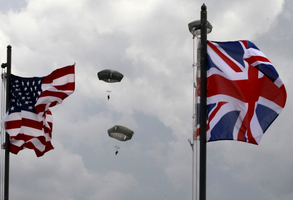 U.S. airborne troops participate in joint military exercises of the U.S., British and Georgian troops at the Vaziani military base outside Tbilisi, Georgia, Wednesday. About 1,300 U.S., British and Georgian troops are conducting joint exercises aimed at training the former Soviet republic’s military for participation in the NATO Response Force. (AP Photo/Shakh Aivazov)