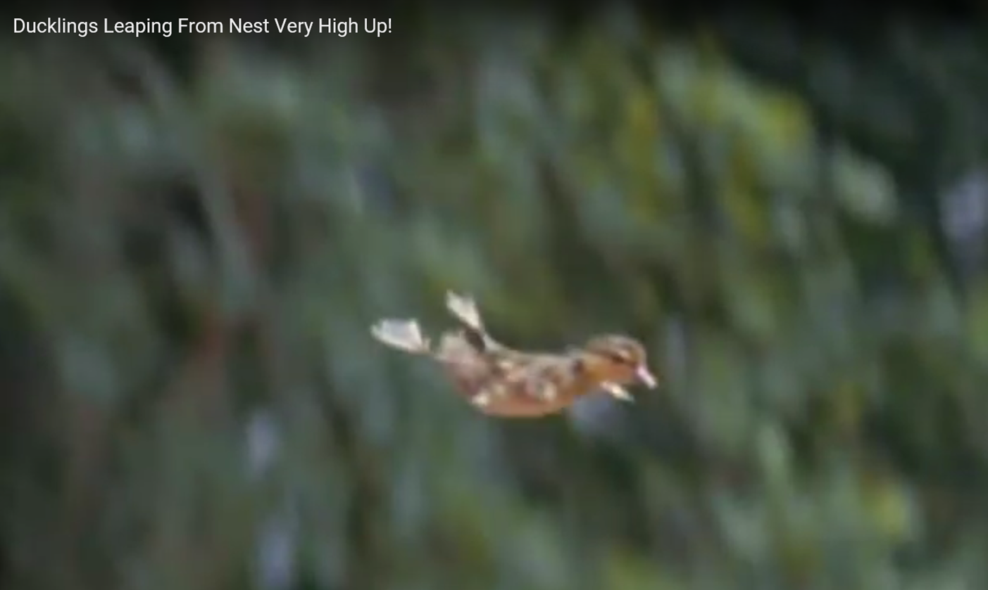 The video below is from another part of the country, but it shows stunning footage of a wood duck jump from outside the nest.
