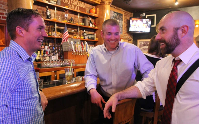 At the Fort Grounds Grill last night, from left, Sid Smith, representative-elect Paul Amador and state Rep. Luke Malek, all of Coeur d’Alene, hobnob re: the results from Election 2016. Amador and Malek will represent Coeur d’Alene in the 2017 Legislature. (Duane Rasmussen photo)