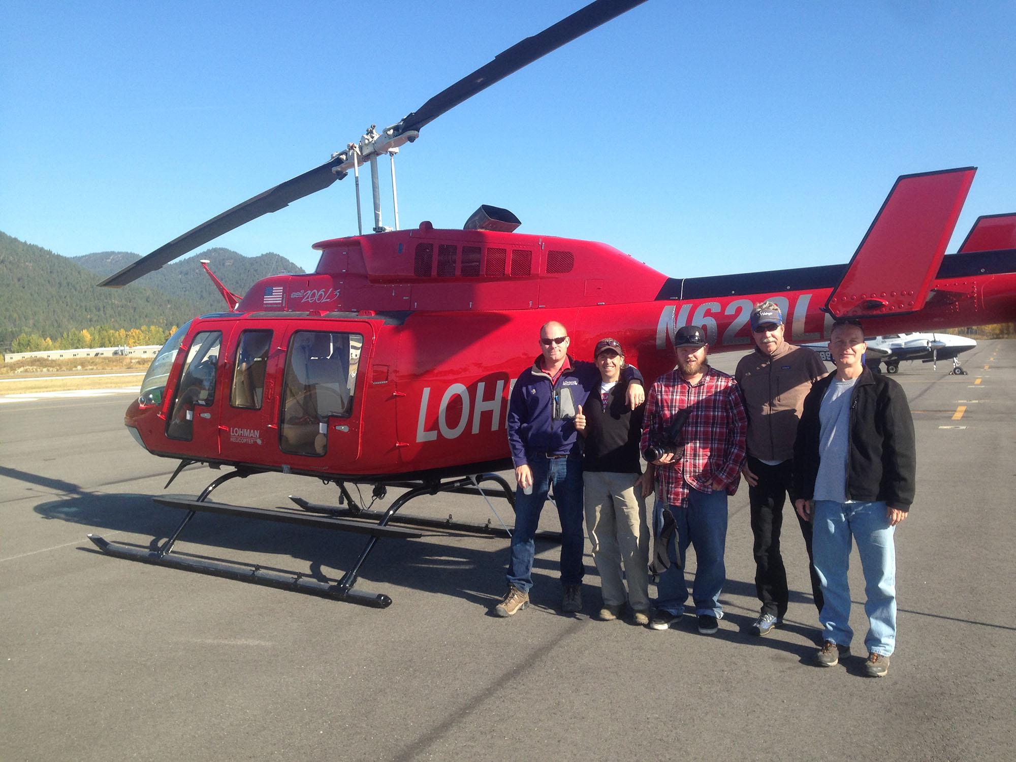 Involved in the 2017 inaugural season of helicopter skiing in the Idaho Selkirk Mountains are, from left, Lohman Helicopter president Morgan Lohman, Selkirk Powder Co. president and chief guide Ken Barrett, Indie Film Editor Cody Carter, Selkirk Powders safety coordinator Dave Alley and marketing director Alf Cromwell. (COURTESY / Courtesy photo)