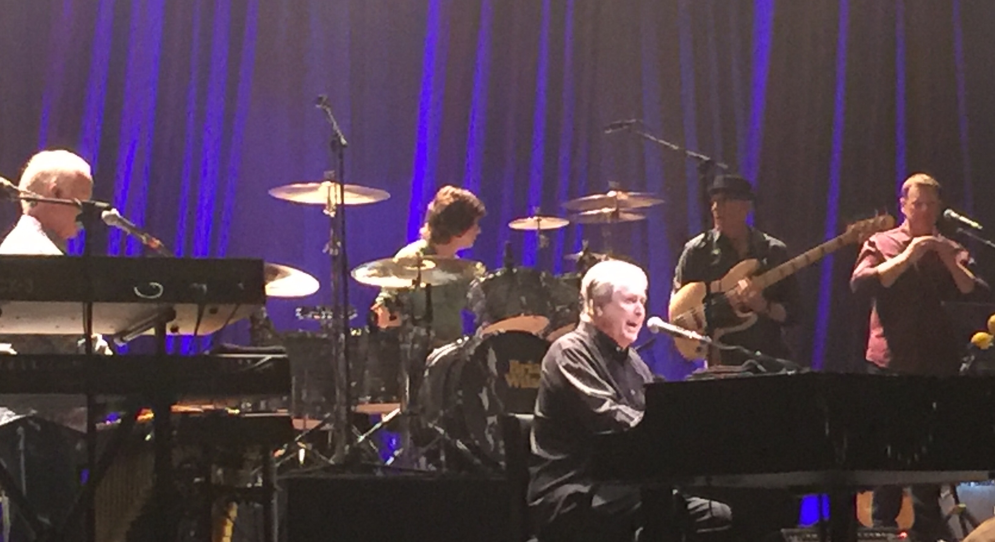 And during the show, which Wilson orchestrated by introducing each song, he sat in the middle of the stage, behind a piano that he occasionally played. He occasionally sang, too, his one-pristine falsetto/tenor far from the perfect instrument it once was.