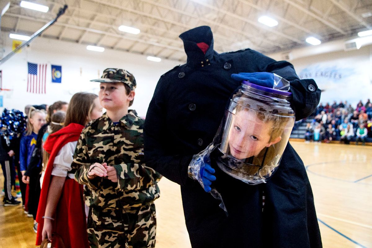 “I’m the decapitated man,” said Skyway Elementary 5th grader Ben Linford during the Halloween parade at the school in Coeur d’Alene today. SR photog Kathy Plonka snapped this photo and several others at the Skyway Elementary Party. You can see the photo set by clicking on the photo above.