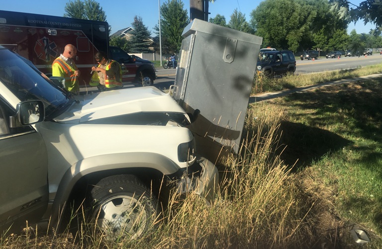 The City of Coeur d’Alene is asking motorists to use caution at the intersection of Prairie Avenue and Atlas Road, and to consider other routes while a damaged traffic signal cabinet is replaced this week. Power to the traffic signal at the intersection will be off and a four-way stop put in place while a crew replaces the cabinet, hit during a vehicle crash in mid-August. The work is scheduled for Tuesday and Wednesday. (City of Coeur d’Alene photo)