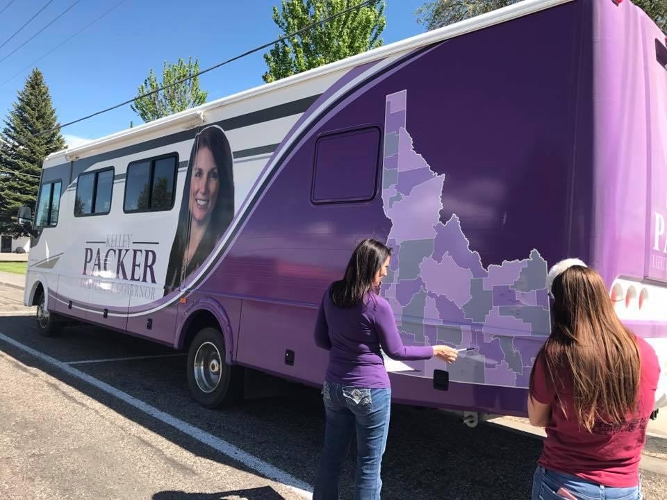 State Rep. Kelley Packer , R-McCammon, has been traveling the state in an RV that’s wrapped with campaign logos, her picture and a signable map of the state. But her campaign warchest is the second-smallest of the group at this point, second only to former Constitution Party gubernatorial candidate Steve Pankey of Twin Falls, who, running this time as a Republican, has reported only a $1,500 donation from himself, which he spent on broadcast advertising.