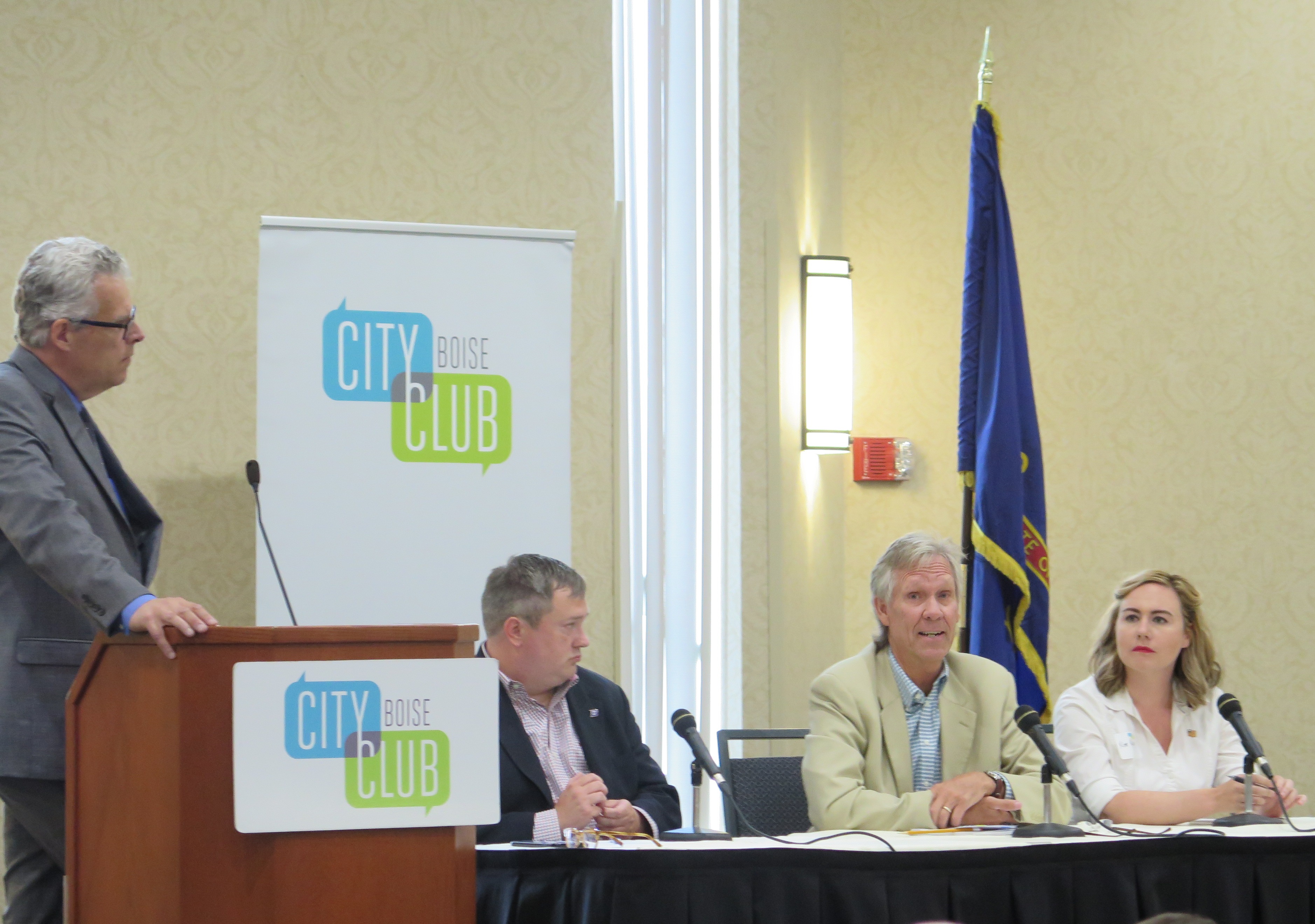 The City Club of Boise held an “Emergency Pundits Forum” today, a version of the luncheon panel it holds each year before the Idaho legislative session, but happening in the summer and focused on President Trump and national politics along with the 2018 Idaho governor’s race. Among the insights from the panel, which included Boise State University political scientist Justin Vaughn, Idaho lobbyist John Watts, and Associated Press reporter Kimberlee Kruesi, was how the Idaho governor’s race has an “outsider” candidate – the role Trump played in the presidential election – in political newcomer Tommy Ahlquist, which Kruesi noted.