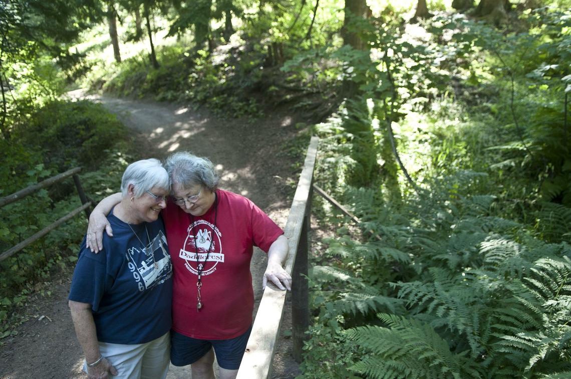 Christie deViveiros, left and Kathy Davis embrace as they talk about thier 60 year friendship that started at Camp Sweyolakan. Cindy Hval reports how Camp Sweylolakan on Lake Coeur d’Alene has connected lifelong friends here. (Photo set by Kathy Plonka/SR here )