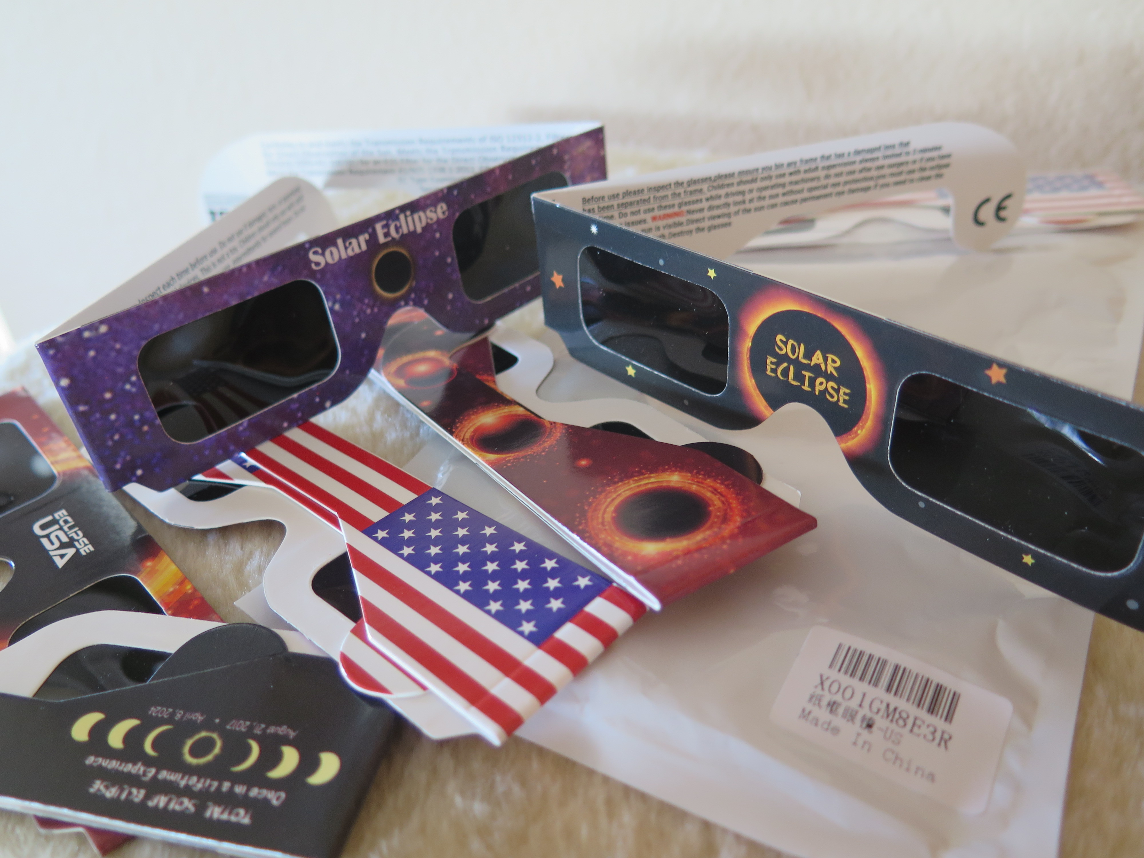 I had purchased two pairs of eclipse viewing glasses from the Weiser Chamber of Commerce on a trip there to write a story about their eclipse festival ; I figured I needed more, so I ordered a 10-pack from Amazon, which arrived promptly.