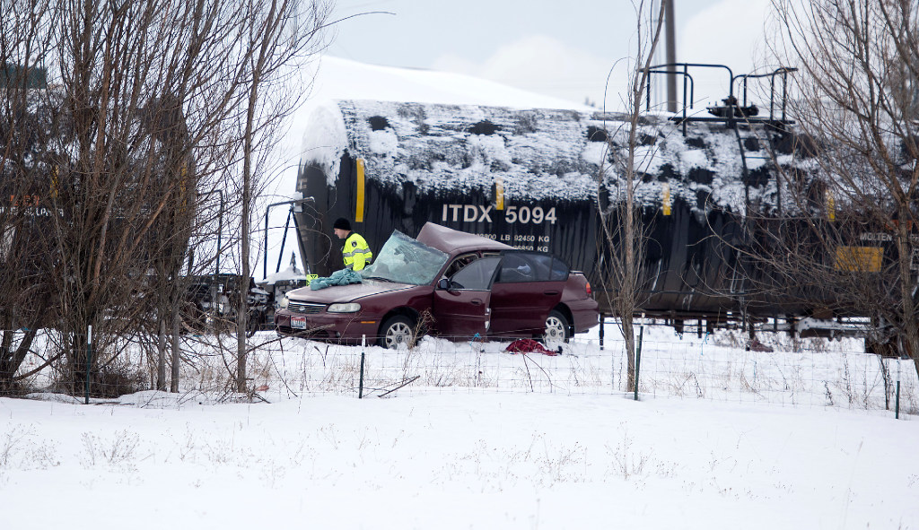 A teenage girl was killed Tuesday when the car she was in was struck by a train at Spokane Street in Post Falls. SR story here. (Kathy Plonka/SR photo)