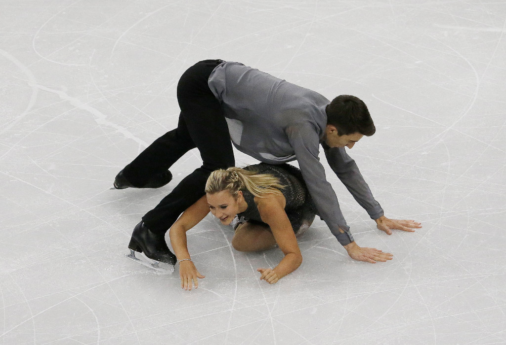 Matilda Friend and William Badaoui of Australia fall down as they perform in the ice dance short dance program at the ISU Four Continents Figure Skating Championships in Gangneung, South Korea, today. You write the cutline. (AP Photo/Ahn Young-joon)
